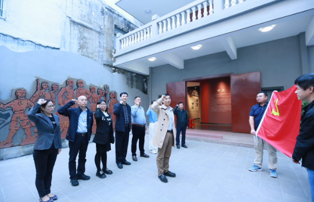 会后,在汕尾市教育局副局长张逸琴的陪同下,来到了中共海陆丰中心县委旧址,以此次帮扶调研为契机,实地开展党史学习。现场,李臣带领党员干部一起高举右拳,面对鲜红的党旗,神情庄重地重温入党誓词。随后,在讲解员的讲解下了解了旧址原为革命前辈郑重的自家楼房“沁园”。1938年在这里举行了中共海陆丰第一次代表大会,成立了中共海陆丰工作委员会。工委以“沁园”为秘密机关,发展党组织,打开海陆丰抗日群众运动的新局面,并于次年3月成立中共海陆丰中心县委。“沁园”既是当年中共海陆丰中心县委机关的秘密办公地址、抗战时期海陆丰党组织的指挥部,也是培养汕尾党政干部的摇篮,先后举办4期党员训练班,领导青抗会开展轰轰烈烈的抗日救亡宣传活动。